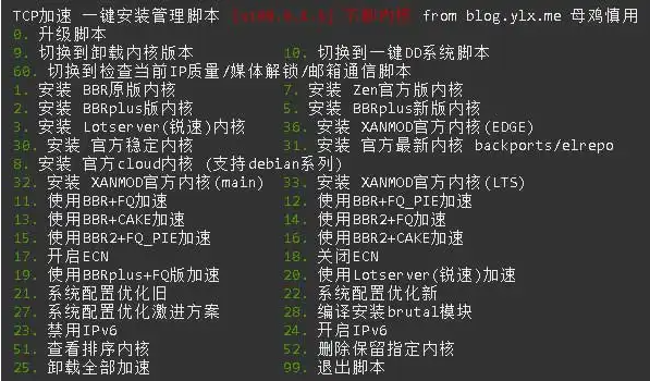 简单介绍过BBR相关的信息,最近折腾一台OVH的服务器的时候,又接触了一个功能比较全面的一键BBR脚本,可以一键个更换最新内核,一键更换xanmod内核,一键开启BBR、BBRplus、BBR2、BBR+FQ、BBR+CAKE等等多个功能。喜欢折腾的可以试试,不过注意尽量不要在已经有生产环境的VPS上折腾,以防万一。